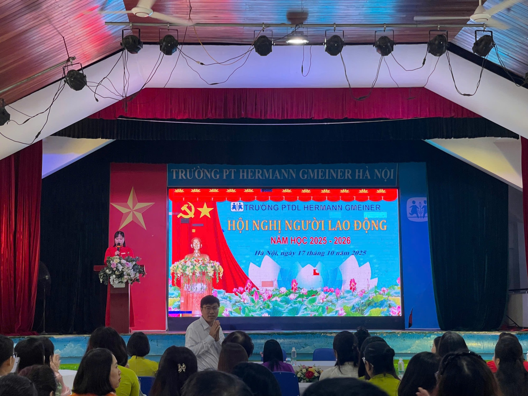 Sáng ngày 17 tháng 10 năm 2025, Trường Phổ thông Dân lập Hermann Gmeiner tổ chức Hội nghị Người lao động năm học 2025–2026 với sự tham dự của đại diện Công đoàn phường Phú Diễn cùng toàn thể cán bộ, giáo viên, nhân viên nhà trường.